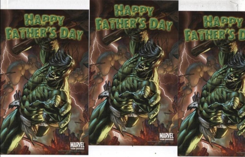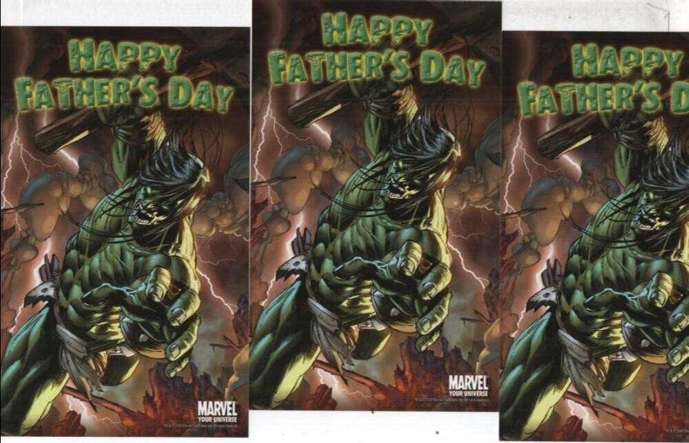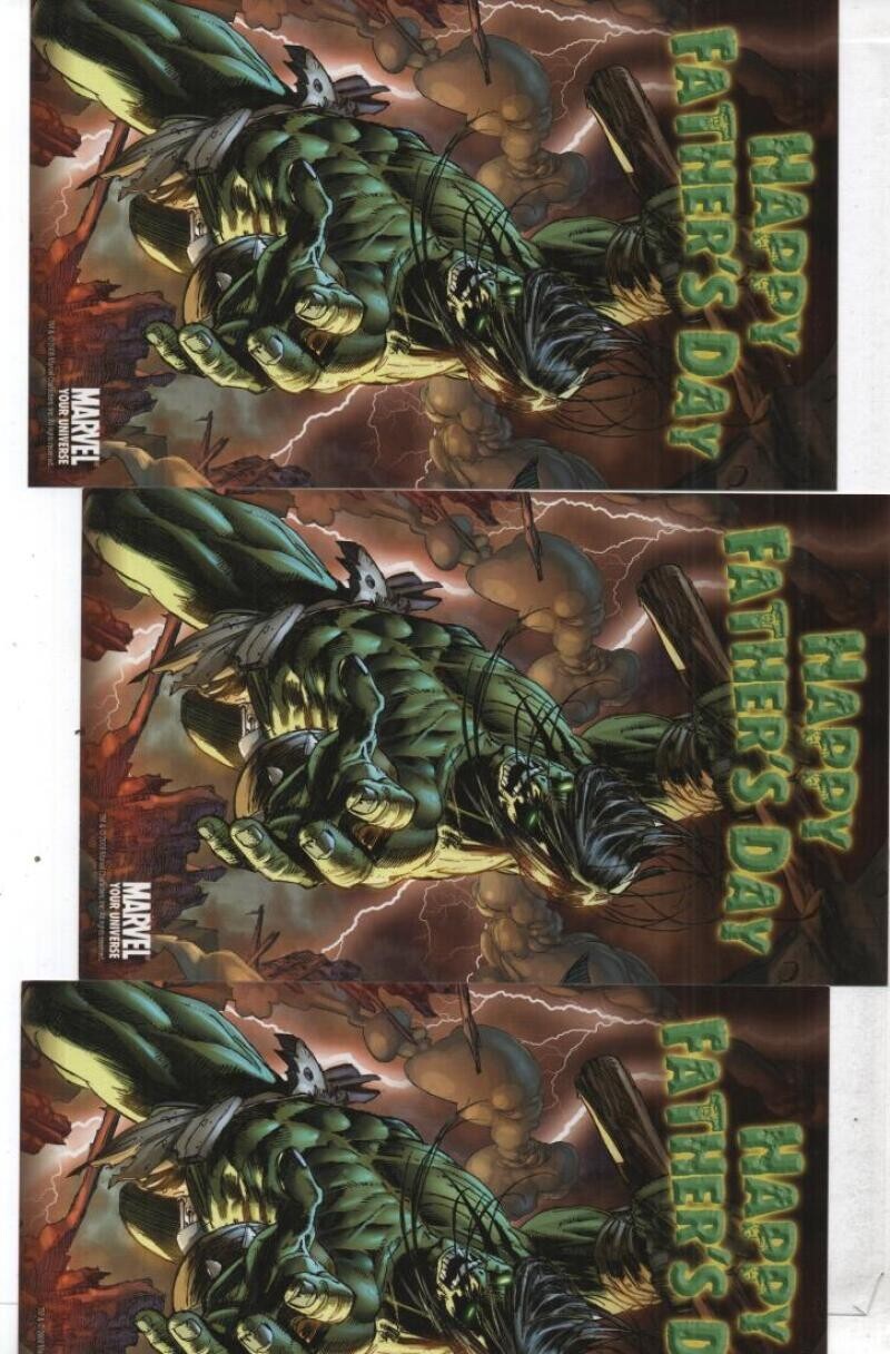 HULK HAPPY FATHER'S DAY POSTCARD x 3, Marvel Comics Smash 2008 4x7