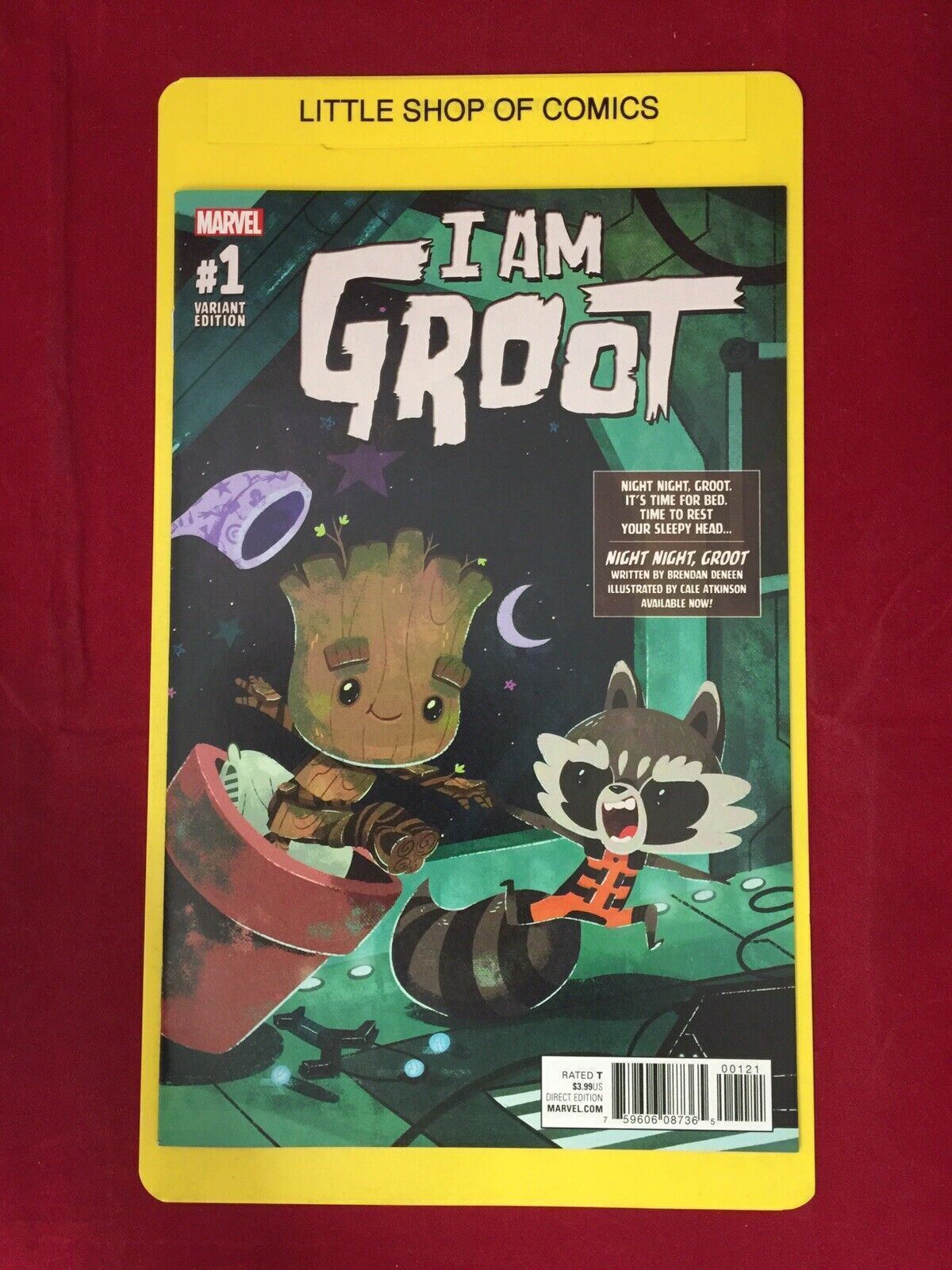 Grade: 9.4 Near Mint This listing is for one (1) copy of I Am Groot (2017) #1 1:10 Cale Atkinson Night Night Groot Variant SPECIAL NOTE: This book is in NM or better condition. ALL COMICS COME BAGGED AND BOARDED Th ... Read More