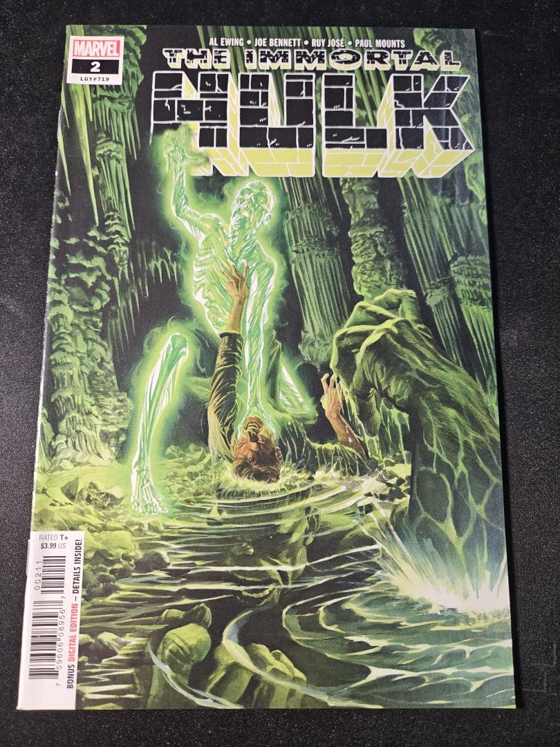 In "The Immortal Hulk #2," Bruce Banner is confronted with the mystery of life and death as the Hulk emerges at nightfall. The issue delves into the eerie and supernatural aspects of Hulk’s existence, emphasizing themes of resurrection and horror. The cover art features a gripping image of transformation and is masterfully rendered.