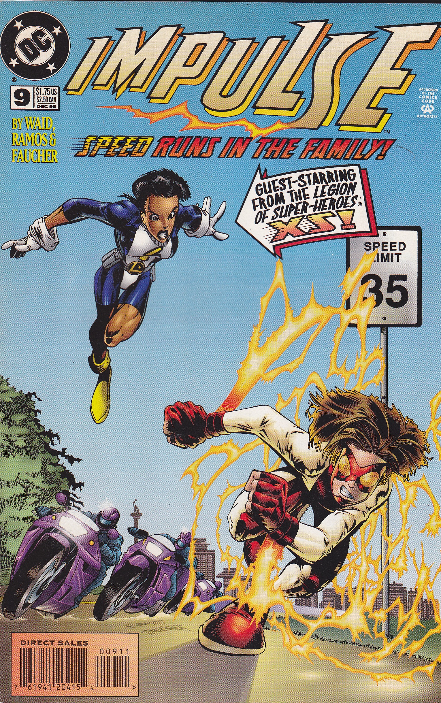 Impulse #9 by DC Comics copyright 1996. I have graded the comic book, using the Overstreet Grading Guide, at VERY FINE with the following defects: Couple of light stress marks along the spine. The corners are starting to round. There is some light yellowing of the pages.Seller Information