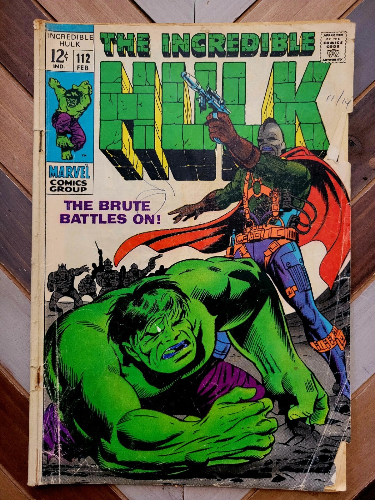 INCREDIBLE HULK #111 2.0 GD (Marvel 1969) "Death" of Galaxy Master. Herb Trimpe cover and art. Early Solo Issue / Silver Age / Off-White Pages Title: The Brute Battles On! Characters: The Hulk [Bruce Banner]; Aliens (villain); Galaxy Master (villain, death) Synopsis: The Hulk finds himself in the middle of a planetary civil war as some of the aliens who have been enslaved by the powerful Galaxy Master join in his fight to destroy the alien monster. Once he succeeds in defeating his foe, the Hulk is put on a rocket back to Earth but the ship has not been properly decompressed and our hero finds himself in a bit of a pickle as he turns back into Bruce Banner whose puny body cannot handle the pressures of deep space. Script: Stan Lee Pencils: Herb Trimpe Inks: Dan Adkins GD approx 2.0 with ink on cover, staple rust, spine roll, center wrap detached bottom staple. The book is complete and still lays flat with bright colors and excellent eye appeal. ~~~~~~~~ The item shown is the exact item you will receive. All grades are approximate. Please review the pics to verify the condition. Ships fast and secure with quality packaging. Buy with confidence.Seller Information