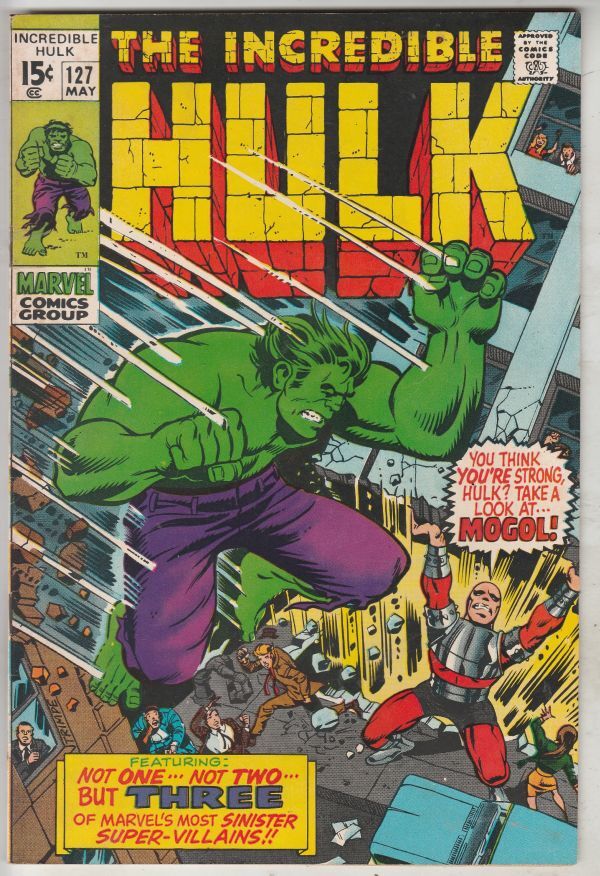 Incredible Hulk #127 - Take a Look at Mogul! 1ST APPEARANCE - Mogul! ARTIST - Herb Trimpe Wow! This book has nice eye-appeal and deep rich color on this all-time-classic Hulk cover! With very faint rust dottings o ... Read More