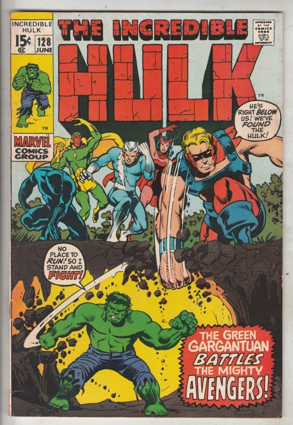 Incredible Hulk #128 - The Green Gargantuan Battles the Mighty Avengers! BATTLE - Hulk Vs. the Avengers ARTIST - Herb Trimpe Wow! This book has nice eye-appeal and deep rich color on this all-time-classic Hulk and ... Read More