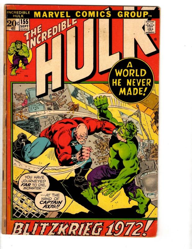 Incredible Hulk # 155 GD/VG Marvel Comic Book Iron Man Thor Captain America RH2