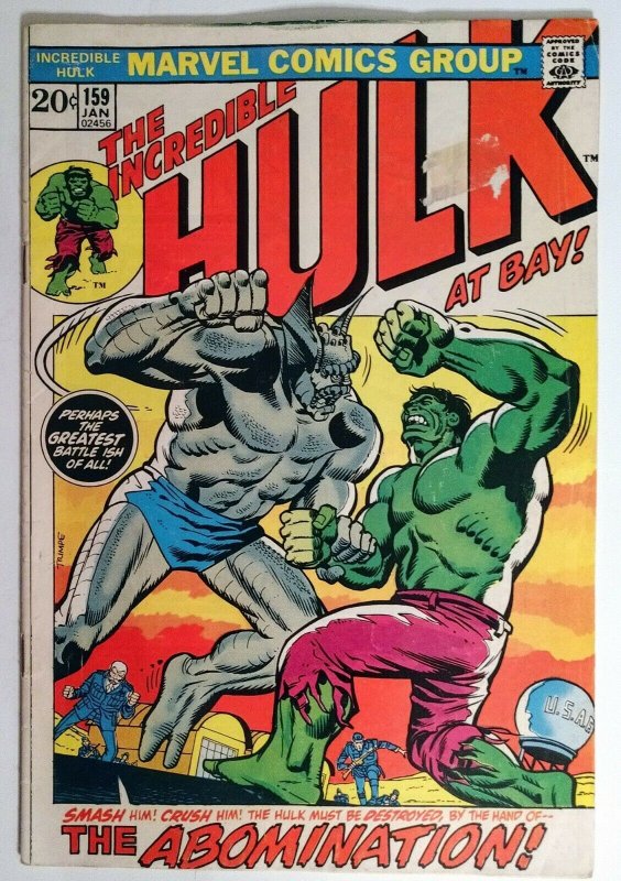 Condition:This book is at 3.5 or higher and is in good condition. Please refer to the images.INCREDIBLE HULK #159, HULK VS ABOMINATION. The book is in good shape and I would say around 3.5 or above. I'm not a professional grader and grading is arbitrary so, please refer to the image or images for grading.All my books are sent out on how I would like to receive them and knowing that it will make it without getting banged up. All item/s will ship out within 24-48 hours after the payment is received and clear. All comics are shipped with USPS Ground. (Some orders will be free depending on finished cost.)