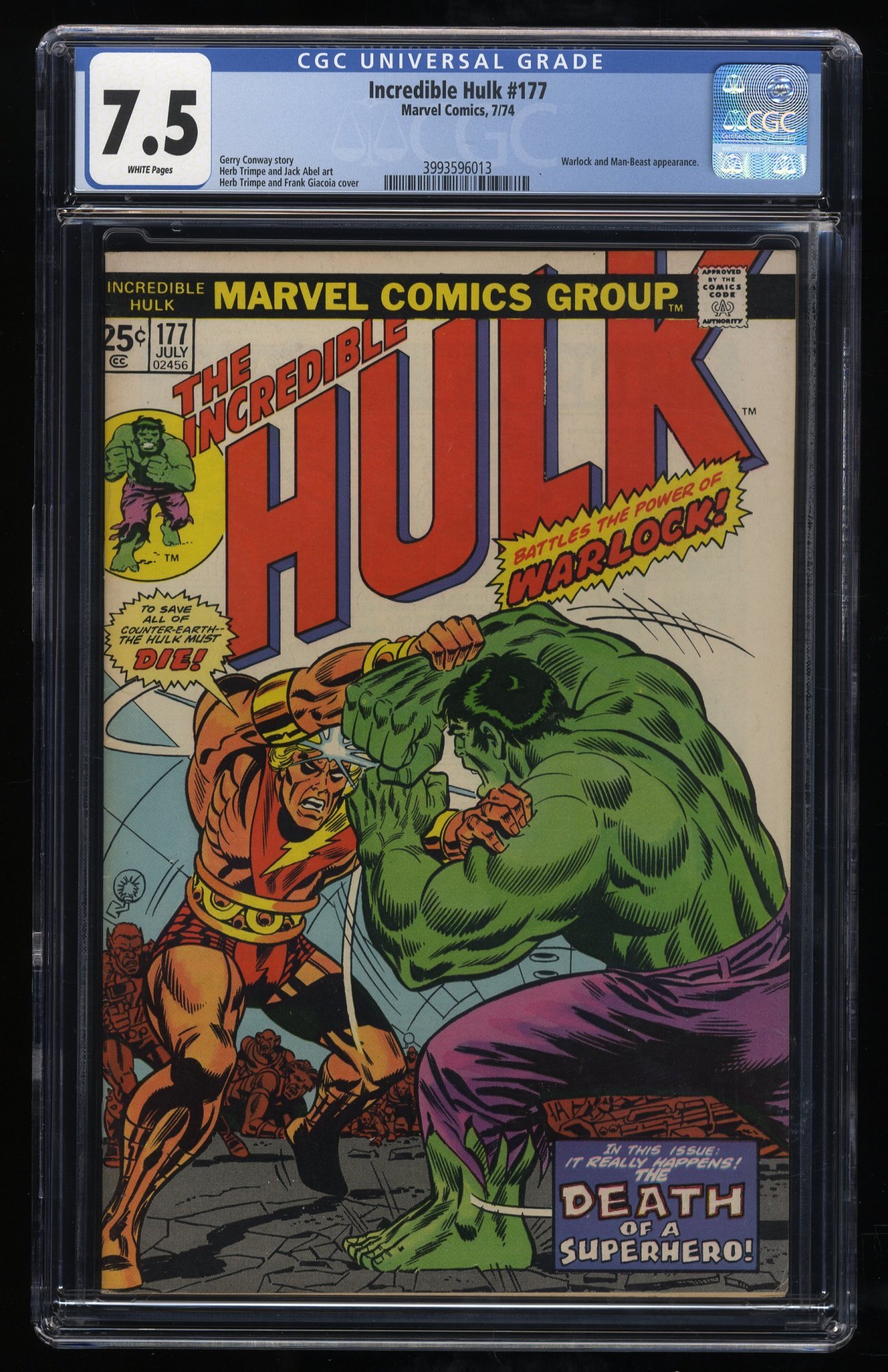 Incredible Hulk #177 CGC VF- 7.5 1st Death Adam Warlock! Black Bolt!