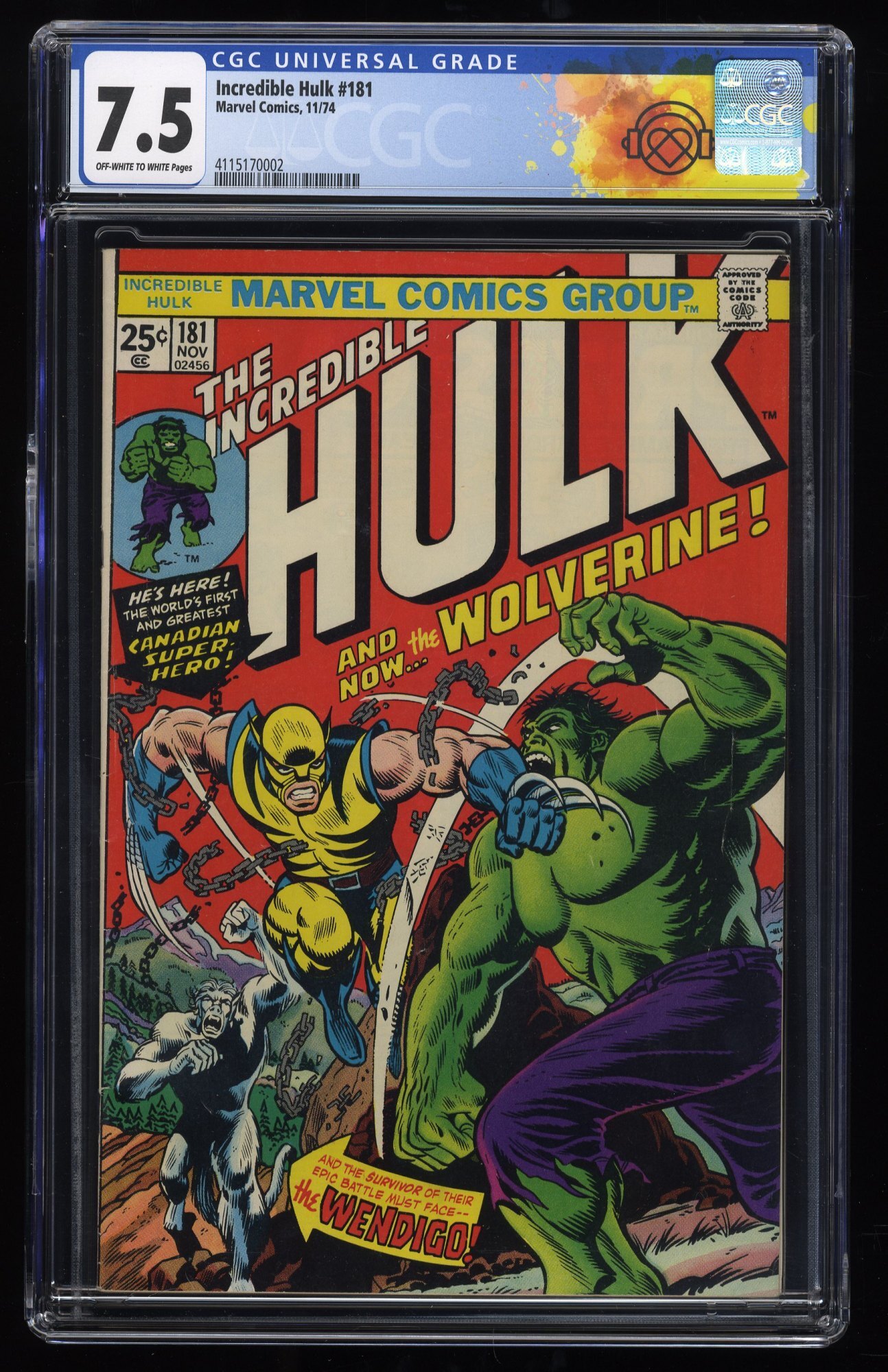 Incredible Hulk #181 CGC VF- 7.5 Off White to White 1st Appearance Wolverine!
