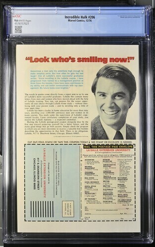 Grade: 9.6 Near Mint+ Incredible Hulk #206 CGC 9.6.You will receive exactly what is pictured in the listing. Items will be shipped extremely carefully to insure they arrive in excellent condition.All S/H for this a ... Read More