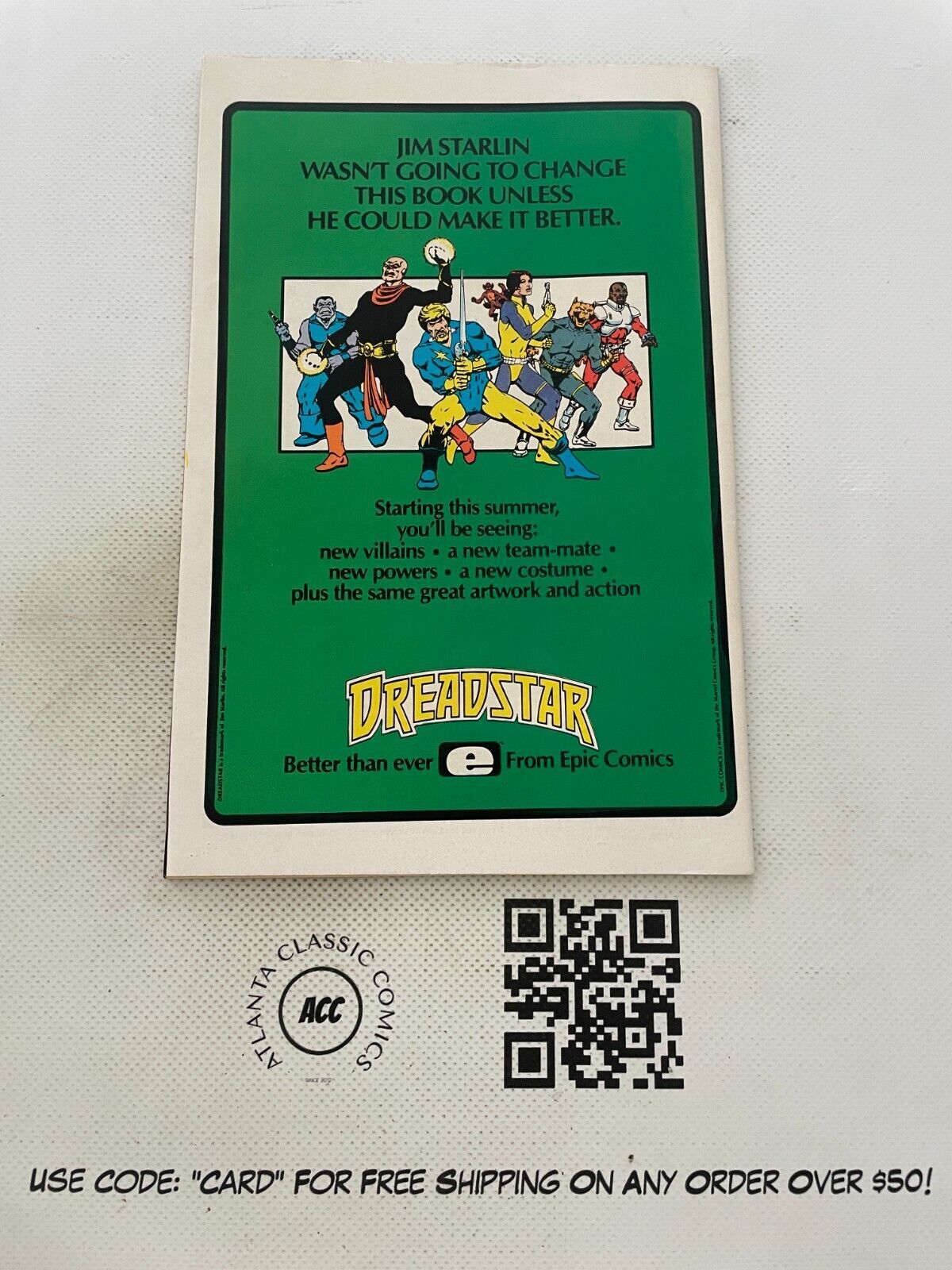 If you combine auction items with BIN (Buy It Now) items, the shipping rates divert to our combined shipping rate tables & we do not offer free shipping. * Important Stuff! ***If you combine listings that offer free shipping with listings that do not, our combined shipping rates (listed below) will be applied to the whole order, and the order will not ship for free unless all items apart of the combined order offered free shipping on their individual listings.**In Addition, if you combine multiple items, the combined shipping rates we'll use are whatever the most expensive displayed option is. Domestic Combined shipping rates:2-5 Books $6.98 6-12 Books $7.9813-20 Books $8.98 21-30 Books $9.9831-45 Books $10.98 46-65 Books $11.9866-85 Books $14.98 86-115 Books $19.98*If you have over 2 TPB/Graphic Novels in one invoice an additional charge of $1/per 3 TPB's will apply.** If your order is over 10 total listings, we'll charge an extra $1 per 10 items. So 10-19 items would be the above combined shipping rate + $1. 20-29 + $2, etc.International Shipping:International Bidders / Buyers are welcome. Please wait before paying so we can invoice you with the correct shipping charge. Feel free to request an exact amount from us prior to buying as Hip's shipping calculator can be incorrect.Condition Information:We attempt to provide an accurate grade to any single issue we sell. This grade can be found in the listing title using one of the following distinctions: GD (2.0), VG (4.0), FN (6.0), VF (8.0), NM (9.4), or a combination of two of them. On lots of books, in general, almost all of the issues we sell are going to be in AT LEAST VG condition.That being said, please look closely at the provided images of the book(s) you are buying; as you will receive exactly what is pictured.* Less Important Stuff! *We accept payments via Hip managed payments. Local Pickup is available in Atlanta.We buy comic book collections of any size, graphic novels, toys, original art, Funkos, & records! Feel free to message us for more details.Please reach out to us if ANYTHING about the item you buy isn't satisfactory before leaving less than positive feedback. We will be happy to resolve any issues and would appreciate the opportunity to do so before something less than positive is said. We're only human and are totally capable of making mistakes so please offer us the courtesy of coming to us first so we can fix whatever is/was wrong with your order.All pictures/scans are of the books you will actually be receiving & all books are sold "As Is". We DO NOT use stock photo's.Return PolicyALL Returns ARE accepted. We charge a 15% restocking fee for a non-shipping damaged OR disclosed defect return. Meaning, if you'd like to return a book that arrived safely as pictured with no additional or undisclosed defects, that's when the restocking fee is assessed. We reimburse original shipping if an item is returned because it arrives damaged or with an undisclosed defect. We do not reimburse original shipping if an item is returned "just because." We do not reimburse return postage in either scenario.Seller Information