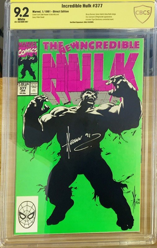 Incredible Hulk #377 CBCS 9.2 RARE HTF Dale Keown signed 1st Print