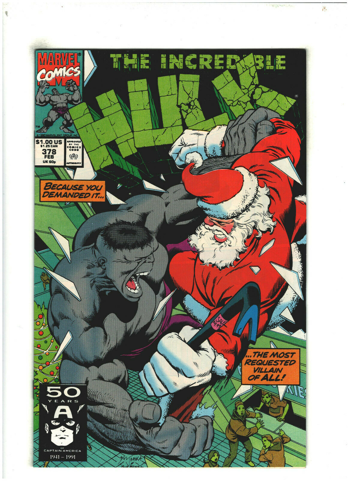 Incredible Hulk #378 VF/NM Marvel Comics 1990 Grey Hulk vs. Santa Claus