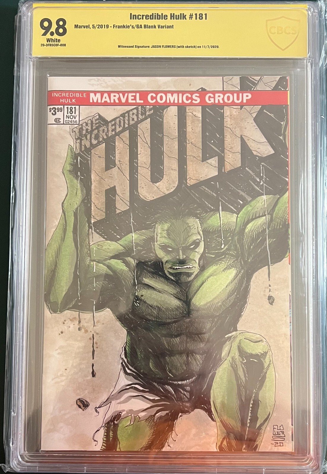 Incredible Hulk Facsimile #181 2019 Jason Flowers Hulk Sketch CBCS 9.8 GB02