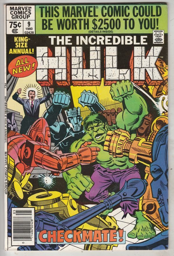 Incredible Hulk King Size Annual #9 - Checkmate! ARTIST - Steve "Spider-Man" Ditko This book has deep rich color and very nice eye-appeal on this all-time-classic Steve "Spider-Man" Ditko Hulk battle cover. With v ... Read More