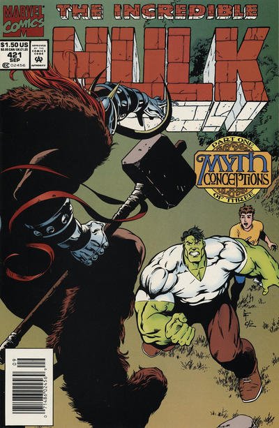 Item: Incredible Hulk, The #421 (Newsstand) | Publisher: Marvel | Cover Date: September 1994 | Writer: Peter David | Artist: Gary Frank | Cover Artist: Gary Frank | Appearances: Pantheon, Jason the Renegade, Agamemnon, Thor | Storylines: Myth Conceptions, Part 1; Pursuit | Notes: Versus Thor; Pantheon and Hulk track Agamemnon to Asgard; newsstand edition | With Economy shipping, each additional comic ships for just 50 cents more to customers in the USA. This listing contains a stock photo and information from ComicBase™ and © Human Computing. The stock photo is for reference only. If you would like to see a photo of the actual item, please message us prior to purchasing.Seller Information