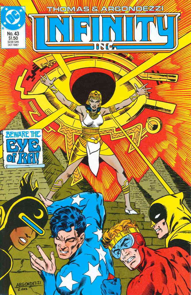 Item: Infinity, Inc. #43 Publisher: DC Cover Date: October 1987 Writer: Roy Thomas, Dann Thomas Artist: Vince Argondezzi Cover Artist: Vince Argondezzi Appearances: Silver Scarab Storylines: Eye! Notes: Ver ... Read More