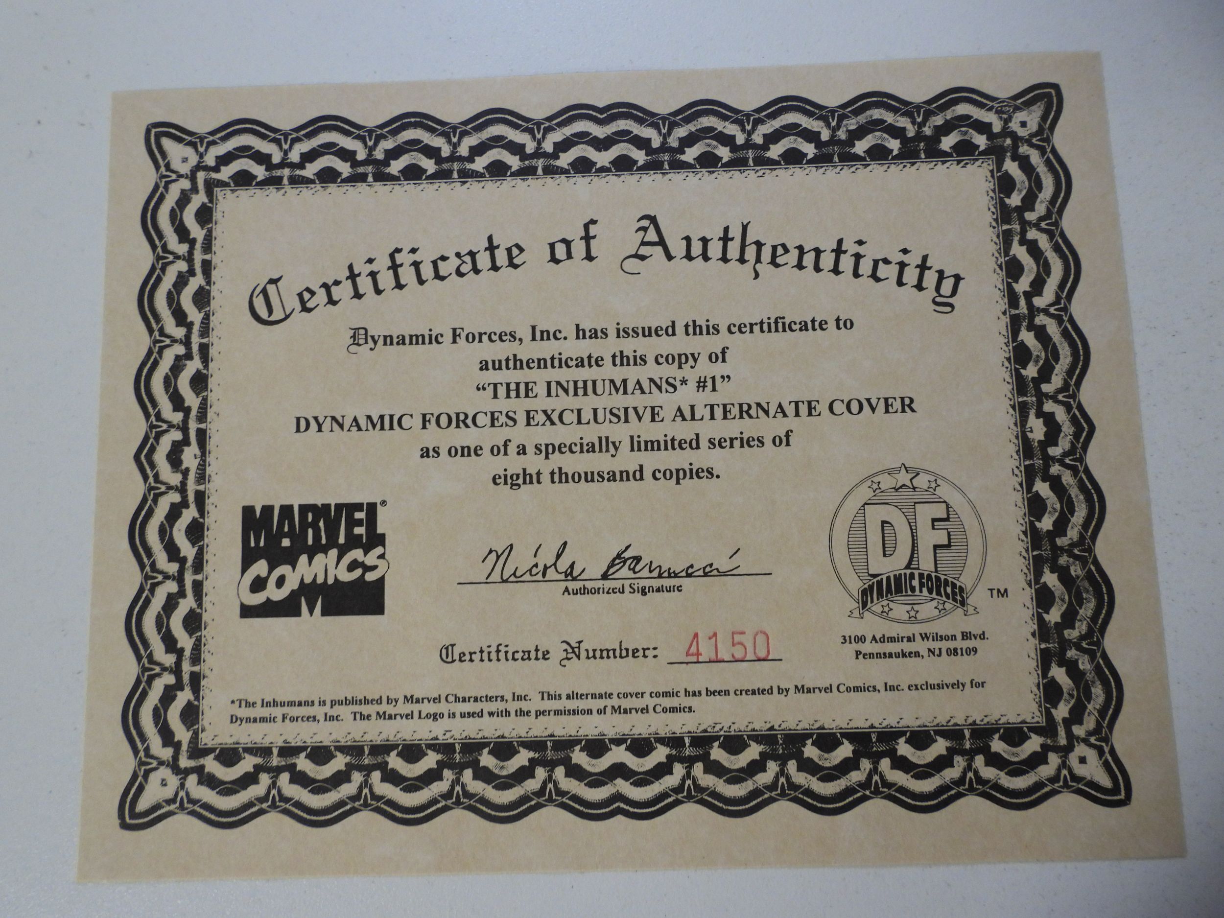 Inhumans #1 Dynamic Forces Exclusive Cover W/COA NM Condition