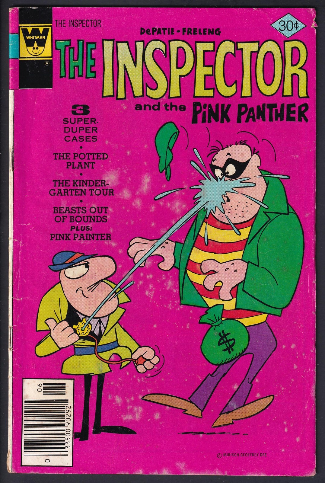 Grade: 2.0 Good Shipping may take up to 5 business daysInspector and the Pink Panther 15Whitman - 1977CartoonBronze Age (1970-83)2.0 GoodCharacters:- Pink PantherDefects:- spotting- discoloration from spotting