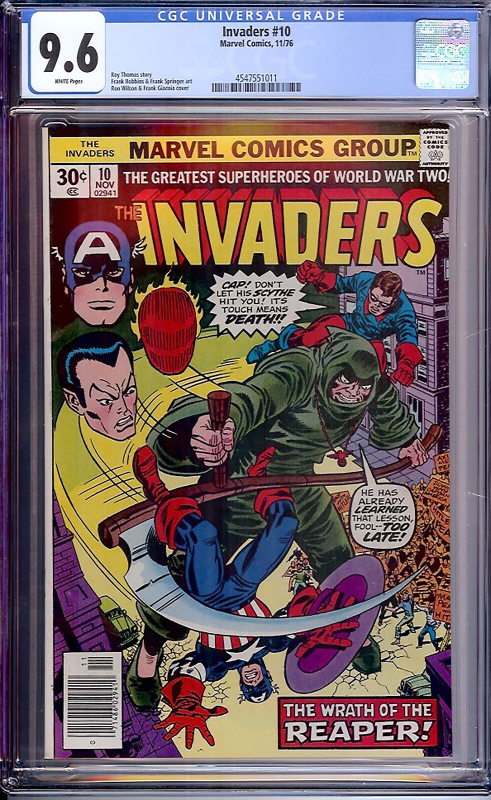 Invaders #10 (Marvel, 11/1976) CGC 9.6 White Pages