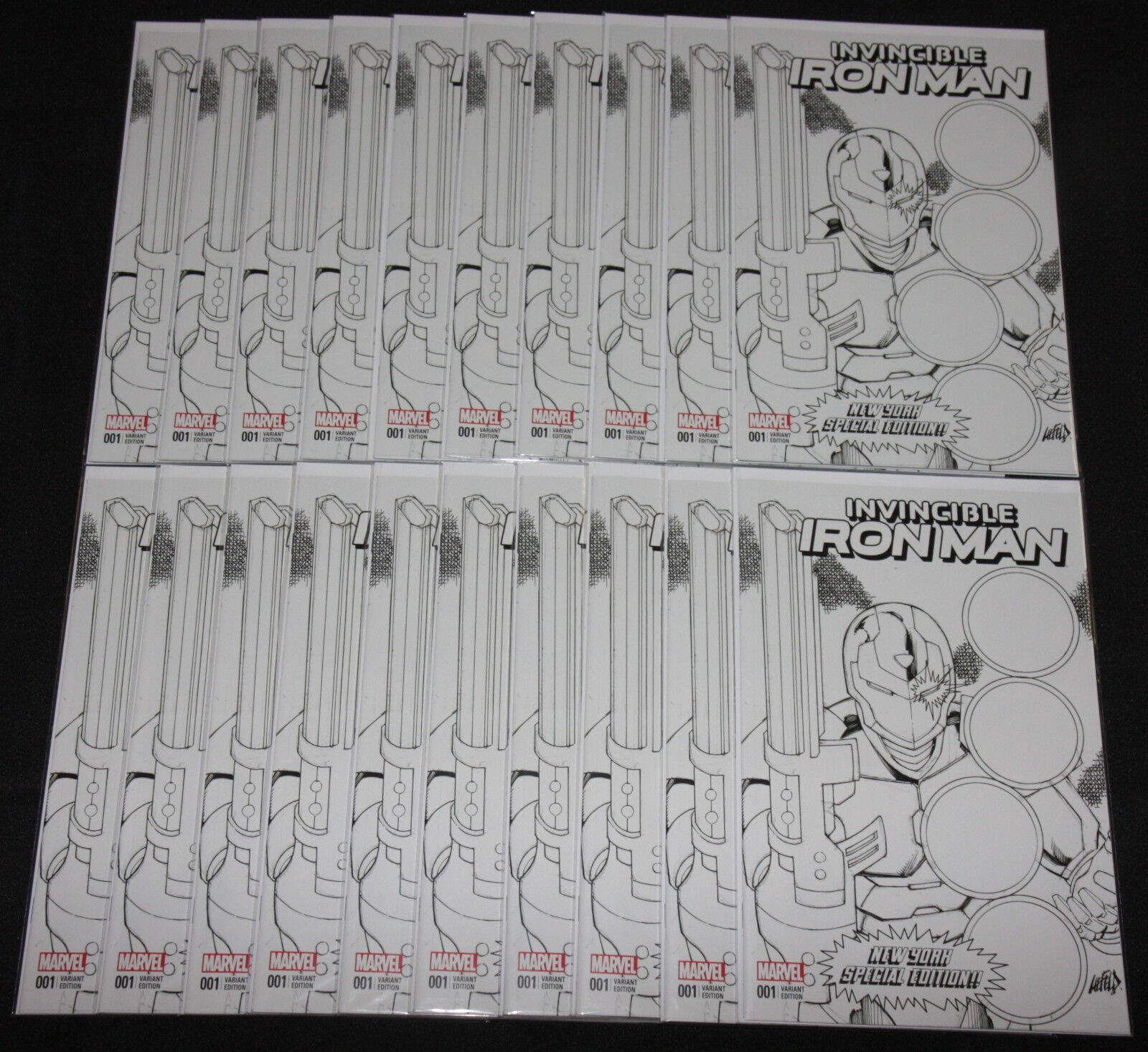 INVINCIBLE IRON MAN #1 - NEW YORK SPECIAL EDITION B&W VARIANT 20pc Comic Lot -A