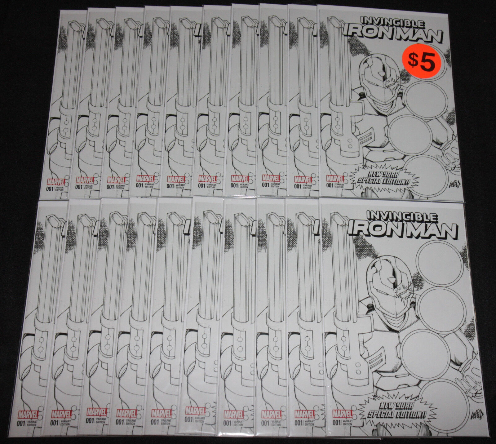 INVINCIBLE IRON MAN #1 - NEW YORK SPECIAL EDITION B&W VARIANT 20pc Comic Lot -F