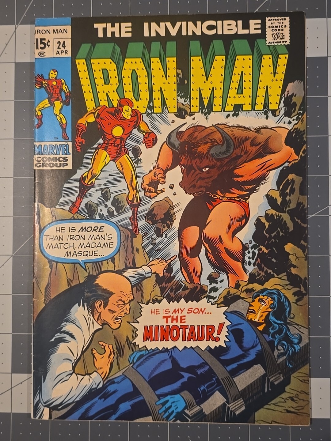Invincible Iron Man #24 (Apr-1970) Marvel — Madame Masque & Minotaur Cover