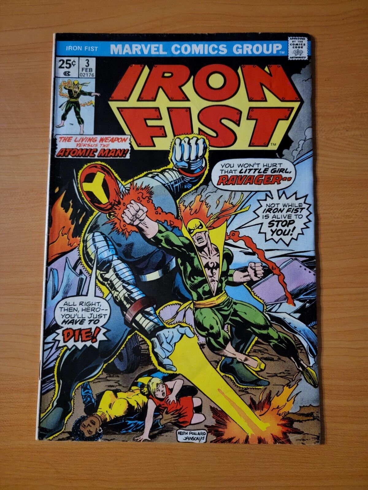 Item DescriptionIron Fist #3Publisher: Marvel ComicsPublished: 1976Item Grade/ConditionGrade: FINE For more information about this grade and other grades, please see our grading standards.~ WE TAKE HIGH DEFINITION PICTURES OF OUR COMICS ~ For more detail use the ZOOM Function and check them out yourself! ~Shipping Info:United States: Comic Book & Magazine Orders of all sizes, big and small ship for a flat Single Shipping ChargeInternational: We use Calculated Shipping! ~ This insures that you get the LOWEST POSSIBLE COST! ~ Please give us one business day to calculate large orders! The Calculator for Hip is pretty bad for international, contact us if you are looking to order multiple books so we can help you make it work on the back end! As a courtesy to our customers, we insure all orders over 50$ US ~ YOU DONT PAY EXTRA!Delivery TimeWe process and ship all orders within 1 business days. Once shipped, estimated U.S. transit time is 2-10 business days; international 14-21 business days.(Orders placed on Friday afternoon as well as weekends will be shipped the next business day as we do not ship on the weekends).PackingOmnomax Traders has mastered packing to ensure our orders of a "damage-free transport."Using the following methods, we have seen a nearly perfect 99% success rate for undamaged comics!Here is how our orders ship:All Orders :Bagged AND Boarded, ALWAYS NO EXCEPTIONS!Shipped in a Gemini Comic Mailer OR Tightly secured between 4x stiff pieces of corrugated cardboard (double Sandwiched)Sealed on all 4 sides with strong packing tape (Items doesn't even wiggle).:*Now this method is nearly perfect! however we have seen damage happen to items ( only once or twice a year ) ~ this is often due to bad handling by the postal service. Always remember to contact us if this happens! we are committed to quality service!*Offers History