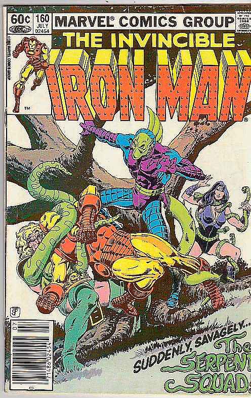 Iron Man #160 - Suddenly, Savagely the Serpent Squad!There is a faint subscription crease down the center of the cover keeps it from receiving a top grade.