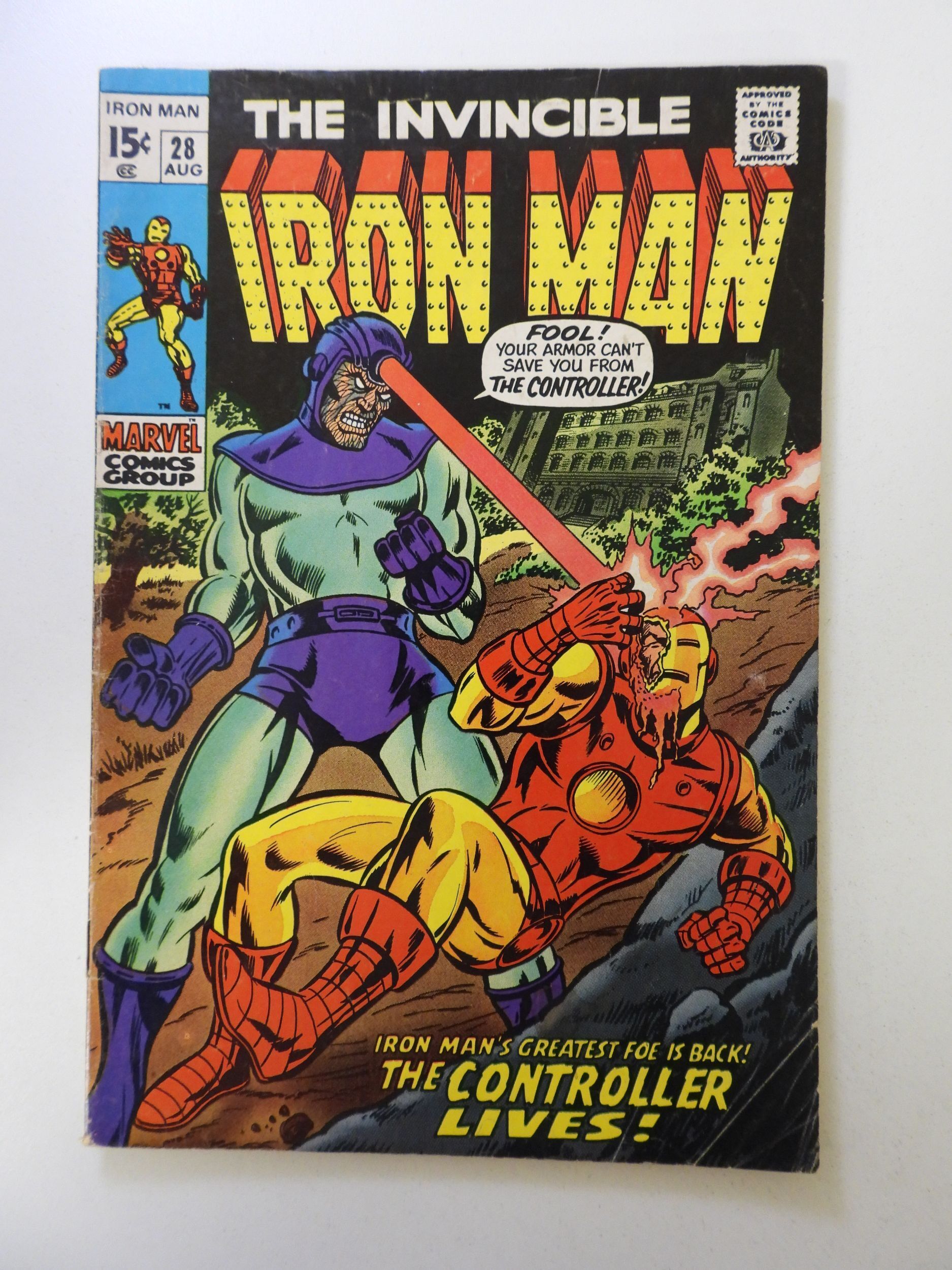 Iron Man #28 (1970) VG+ condition "stain back cover"