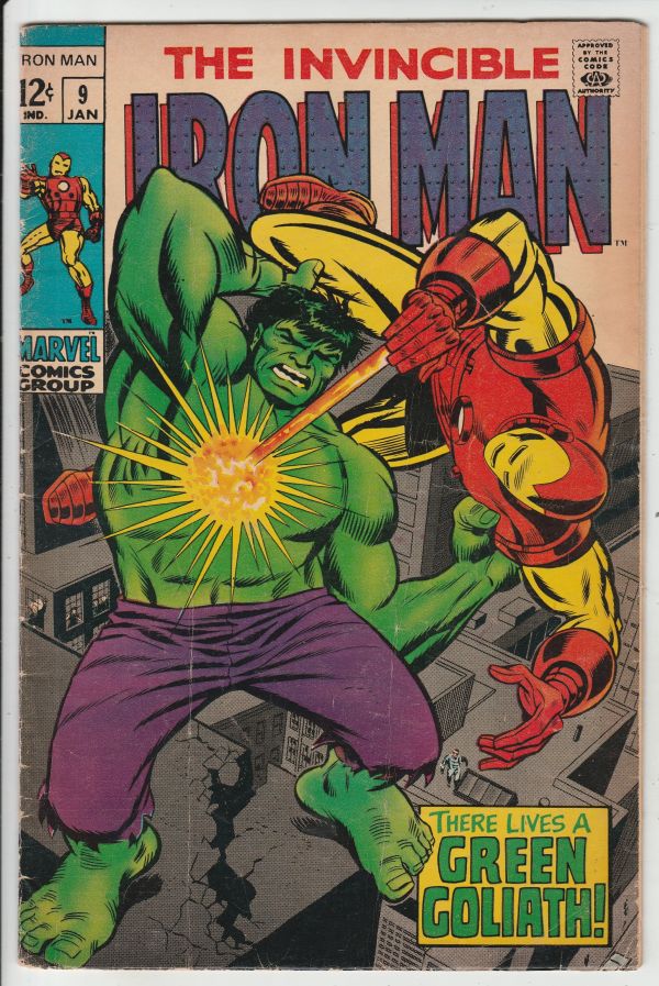 Iron Man #9 - There Lives A Green Goliath! BATTLE - Iron Man Vs Hulk ARTIST - George Tuska! {{Grade Synopsis}} Characters Iron Man, Incredible Hulk Stories "There Lives A Green Goliath!" Issue #9 - Vol. 1 Era: ... Read More