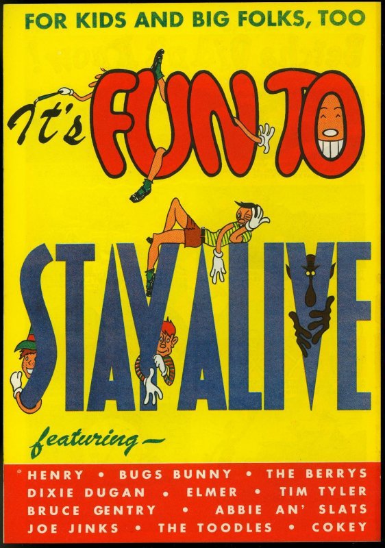 Grade: VF/NMIt's fun to stay alive-rare giveaway-bugs bunny-elmer vf/nm national automobile dealers association giveaway comic. Features: bugs bunny, the berrys, dixie dugan, elmer, henry, tim tyler, bruce gentry, abbie and slats, joe jinks, the toodles, and cokey. Nice high grade issue. Grade: vf/nm sku: u1-06-074