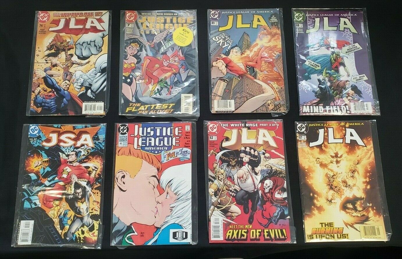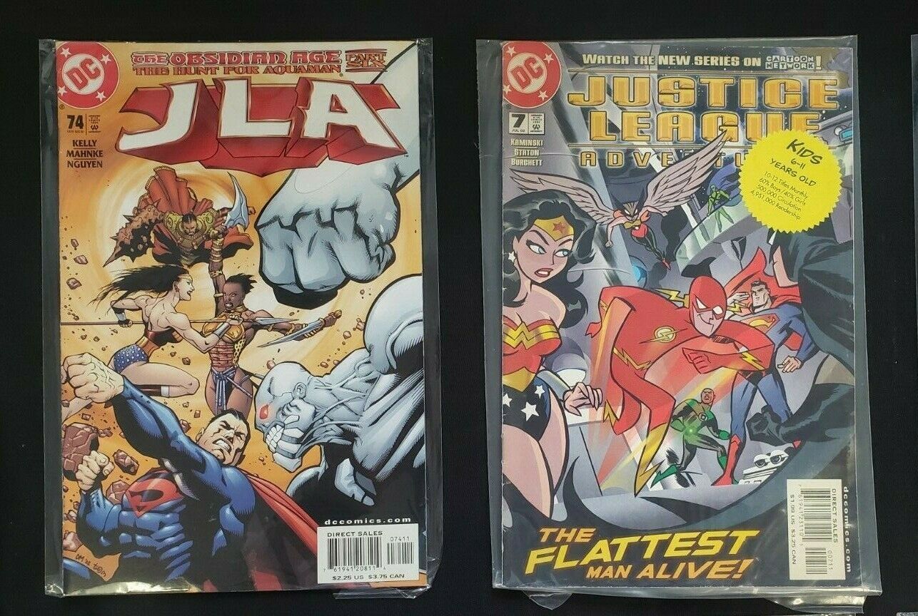 Condition: Justice League America #45JLA #74, #82, #87-89JSA #41Justice League Adventures #7Jla 8pc (vf) flash fax, a fool in love, justice league adventures 1990-2003size: 7" x 10"this item was uploaded by tk.We combine shipping!!! Either wait for us to send you an invoice after you commit to buy or, if it makes you pay right away, message us back and we'll refund the excess charge. Buy as many single comic books as you want for one low flat shipping rate in the united states! International will be charged exact according to size and weight. If you have any specific questions or requests, please ask us prior to ordering and we'll get back to you as soon as we can. If there are any problems with your order whatsoever, please message us before leaving feedback and we'll be happy to work with you to fix the situation! We ship worldwide, combine purchases, and charge exact shipping. The price may vary based on size, weight, and location. If you are automatically overcharged for shipping, message us and we'll be happy to revise the invoice or refund you the excess amount. If you have any questions regarding shipping, please message us. International buyers - please note: import duties, taxes, and charges are not included in the item price or shipping cost. These charges are the buyer's responsibility. Please check with your country's customs office to determine what these additional costs will be prior to bidding or buying. Payment can be made by paypal and credit cards directly. 120,000+ items in total in my Hip store! Frequently asked questions: when are your operation hours?Our in office hours are monday - friday, 11 am - 8 pm. We are not open on weekends, so if you send us a request on friday evening we won't get back to you until monday afternoon. Please don't take it as us ignoring you! We will work on your request monday and get back to you as soon as we can. Also, if you order from us on a friday evening or saturday morning we won't start processing your order until we open on monday. That means on monday it will be pulled and prepped for shipping, then picked up by the postman on tuesday morning.When will you ship my item? The tracking hasn't moved.We realize you're eager to get your item, so if the tracking hasn't moved in a few days please don't be concerned. We give the postman a lot of packages daily, sometimes as many as 100, so he does not scan each item for us upon pickup as he says it would be too time consuming for him to do so. If you get a tracking number from us, that almost always means your item was picked up by the postman the next business day. The usps is also imperfect. There are times when the tracking won't even show movement until it's in your area's regional distribution center. This is normal in our experience. Is the item pictured the exact one for sale?Yes! We don't use stock images and go through great lengths to scan or photograph everything we list. The item pictured is exactly what you should receive unless it is a fixed price listing with multiple items available. Can you issue a coa? We can, upon request. Please make sure you leave us a note while checking out and shoot us a message immediately after requesting one, just to be sure. How do you grade?Grading is very subjective, but we are professionals with decades of grading experience between us who try the best we can to accurately describe the condition of the items we list. Anthony is an overstreet comic book price guide advisor please see the grading chart below for a breakdown of how we grade: note: we don't grade any raw books higher than 9.2, as once you go higher than that grading gets really subjective. If you buy a nm book from us, it may very well be higher than 9.2 but we play it safe and grade conservatively. 9.2 nm near mint 9.0 vf/nm very fine/near mint 8.5 vf+ very fine+ 8.0 vf very fine 7.5 vf- very fine- 7.0 fn/vf fine/very fine 6.5 fn+ fine+ 6.0 fn fine 5.5 fn- fine- 5.0 vg/fn very good/fine 4.5 vg+ very good+ 4.0 vg very good 3.5 vg- very good- 3.0 gd/vg good/very good 2.5 gd+ good+ 2.0 gd good 1.8 gd- good- 1.5 fr/gd fair/good 1.0 fr fair 0.5 pr poorhow do you ship comics? We ship in rigid cardboard mailers to protect your comic book from the worst the mail system has to offer. Price varies based on the number of books you purchase, but we try to keep costs as low as we can and charge exact shipping. If it looks unusually high to you please send us a message and we'll be happy to double check for you. Do you combine shipping? Yes, of like items. Such as: several comics can fit in one cardboard mailer, as can more than one record. Multiple art pages can easily be combined because they are light and thin. Where combined shipping differs is with size and weight. For instance, two statues require a much bigger box. Same goes for cgcs, as the package gets bigger and heavier as you go. Do you ship well? I've had some bad experiences... You needn't worry; we are professionals who value your business and want your item to arrive safely as much as you do. I have been collecting for over 30 years. I send out items the way i would like to receive them. The tracking says my item is "out for delivery" in new jersey. Why is that?If the tracking indicates that the item is "out for delivery" in nj don't worry, it's just what the tracking says when it's carried over from the postman to the sorting center. This is normal for our post office and will not impact you receiving your item in a timely matter.What is the difference between a run and a lot?Good question. A run will be a collection of consecutive issues with no breaks in between them. If it says run of #s 1 - 50 you will receive 50 consecutive comics. A lot will be within a certain range, so a 50pc lot will not contain consecutive books.I changed my mind after successfully winning the auction or fixed price listing, will you cancel the transaction? Please only bid or hit buy it now if you are willing to follow through and pay for the item, 