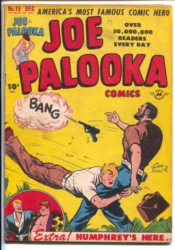 Grade: VGJoe Palooka #15 1947-Harvey-1st Humphrey-Ham Fisher-1st Atoma-Bob Powell-VG -1st Humphrey, origin; Ham Fisher art- -1st appearance of Atoma, sci-fi super heroine with art by Bob Powell Grade: VG SKU: EA-23-048