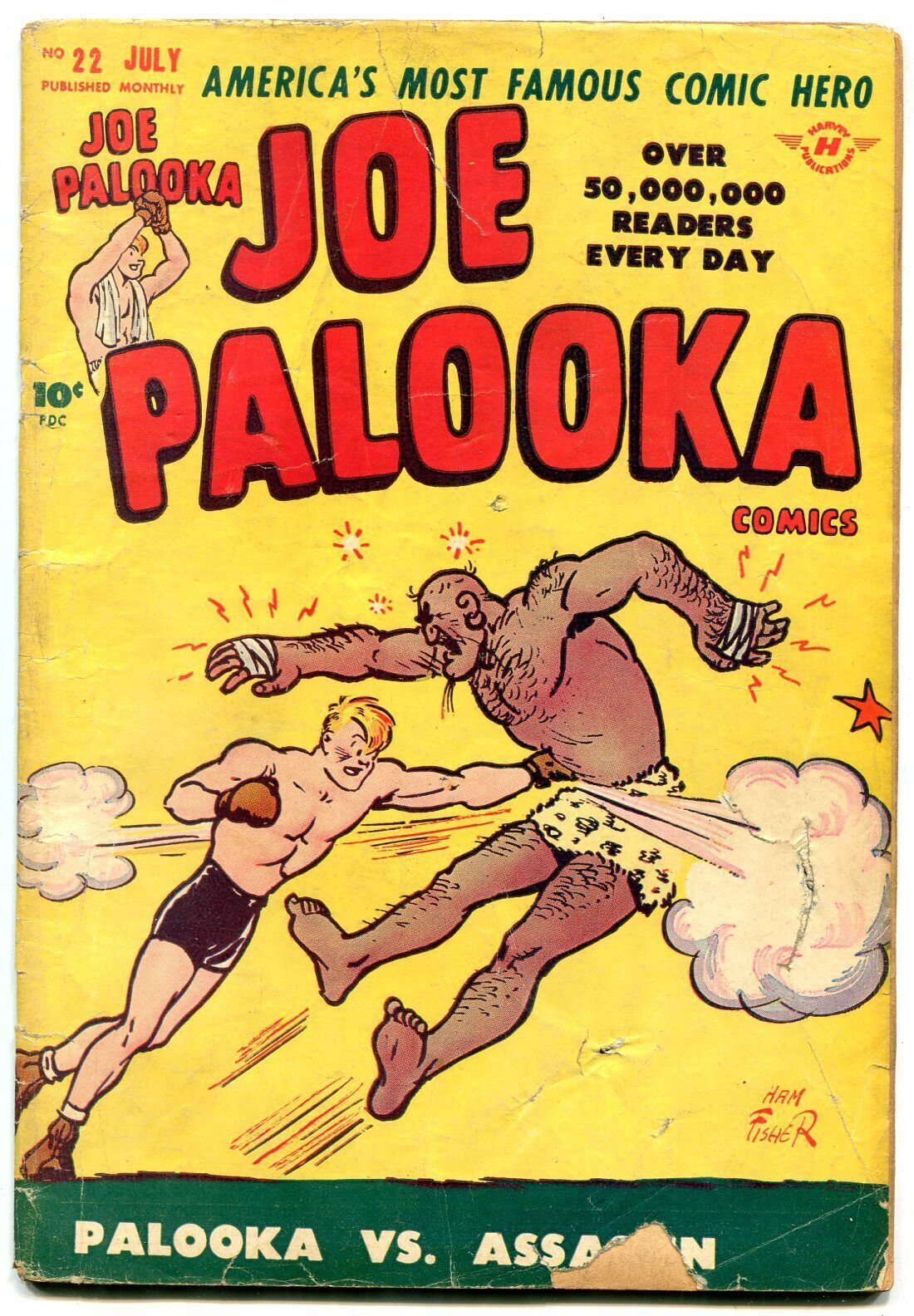 Joe palooka #22 1948-harvey comics-powell art-black cat g/vg flyin' fool by bob powell, black cat text story, boxing art by ham fisher, little max, foreign legion story, negro art. Piece missing from front cover. 1948 grade: g/vg sku: u2-63-150