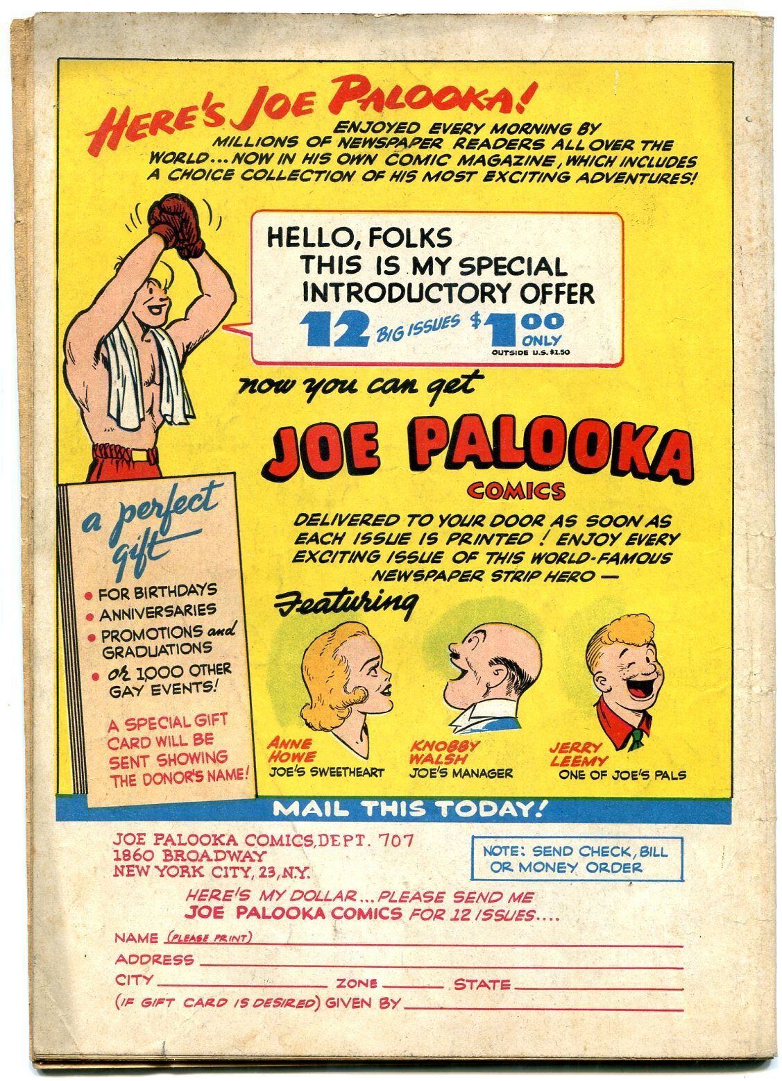 Grade: FNJoe palooka #7 1946-harvey comic-1st flying fool-boxing fn boxing issue, ham fisher art. First flyin fool. Grade: fn sku: ck02-052