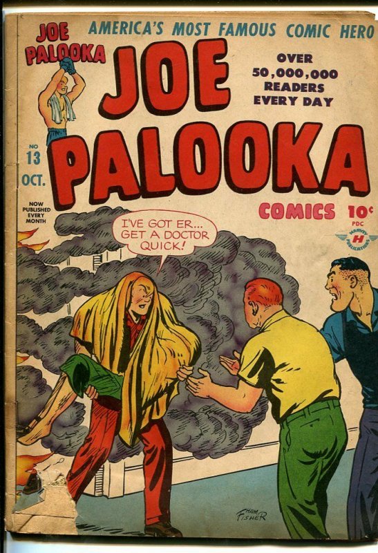 JOE PALOOKA COMICS #13-FIRE RESCUE COVER-HAM FISHER VG