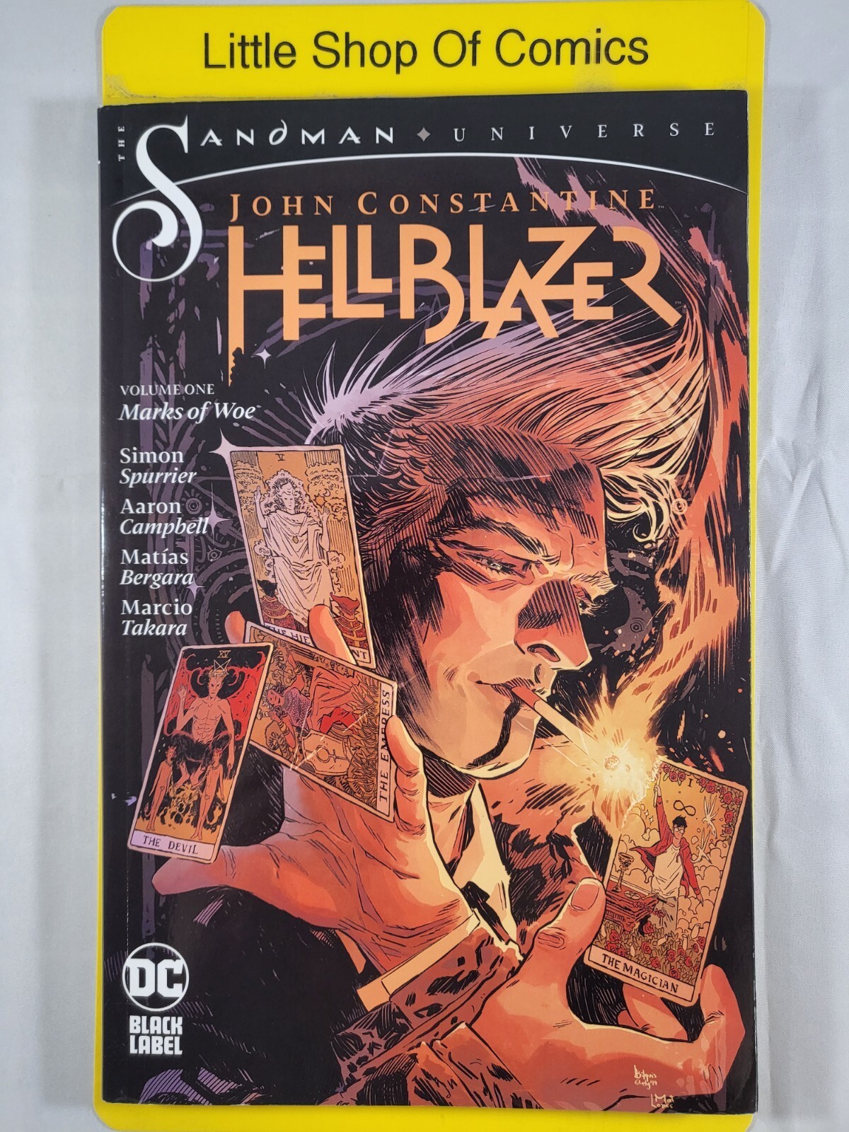 Condition: Acceptable condition. This is a shop-worn copy and may have been received in this condition from ... Read more about the seller notes Acceptable condition. This is a shop-worn copy and may have been received in this condition from the distributor. There is heavy damage with multiple creases, dents, and scratches on the front and back covers and on the interior pages. The book is complete and readable. Read Less about the seller notesThis listing is for John Constantine Hellblazer Volume 1 Marks of Woe TPB 3rd Printing"John Constantine is back in London and back to his old tricks. A small-time gang lord has found himself dealing with an outbreak of supernatural weirdness...and without any allies to call on, John doesn't have much choice in taking a paycheck from one of London's worst, or accepting the help of one of the ganglord's would-be foot soldiers. But what should be an open-and-shut exorcism turns out to be nothing but... and the madness is just beginning! Collects The Sandman Universe Presents: Hellblazer #1, John Constantine: Hellblazer #1-6, and Books of Magic #14. "Please see photos. Shelf wear. Acceptable condition. This is a shop-worn copy and may have been received in this condition from the distributor. There is heavy damage with multiple creases, dents, and scratches on the front and back covers and on the interior pages. The book is complete and readable. Local pick-up is on Thursdays from 11 am to 4 pm. We follow Hip's 3 business-day shipping and handling timeframe. Business days do not include Saturdays, Sundays or holidays.Thank you for looking at our listing, this is how we make a living if you have any issues with your item(s) please get in touch with us first so we can help you with resolve that issue. Again, thank you for checking us out.