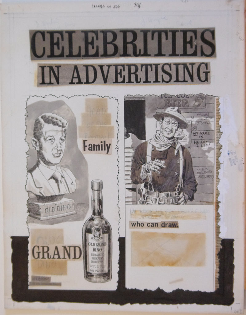 JOHN SEVERIN original art, CRACKED AD, 14x17, John Wayne, Dean Martin, Celebs