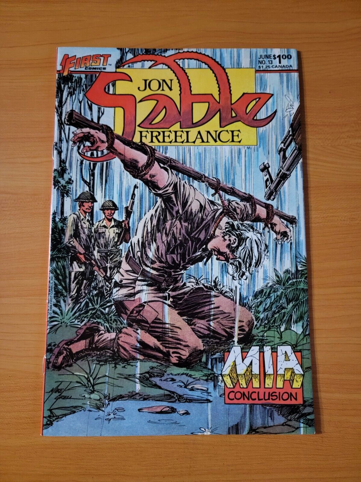 Item DescriptionJon Sable, Freelance #13Publisher: First ComicsPublished: 1984Item Grade/ConditionGrade: NEAR MINTFor more information about this grade and other grades, please see our grading standards.~ WE TAKE HIGH DEFINITION PICTURES OF OUR COMICS ~ For more detail use the ZOOM Function and check them out yourself! ~Shipping Info:United States: Comic Book & Magazine Orders of all sizes, big and small ship for a flat Single Shipping ChargeInternational: We use Calculated Shipping! ~ This insures that you get the LOWEST POSSIBLE COST! ~ Please give us one business day to calculate large orders! The Calculator for Hip is pretty bad for international, contact us if you are looking to order multiple books so we can help you make it work on the back end! As a courtesy to our customers, we insure all orders over 50$ US ~ YOU DONT PAY EXTRA!Delivery TimeWe process and ship all orders within 1 business days. Once shipped, estimated U.S. transit time is 2-10 business days; international 14-21 business days.(Orders placed on Friday afternoon as well as weekends will be shipped the next business day as we do not ship on the weekends).PackingOmnomax Traders has mastered packing to ensure our orders of a "damage-free transport."Using the following methods, we have seen a nearly perfect 99% success rate for undamaged comics!Here is how our orders ship:All Orders :Bagged AND Boarded, ALWAYS NO EXCEPTIONS!Shipped in a Gemini Comic Mailer OR Tightly secured between 4x stiff pieces of corrugated cardboard (double Sandwiched)Sealed on all 4 sides with strong packing tape (Items doesn't even wiggle).:*Now this method is nearly perfect! however we have seen damage happen to items ( only once or twice a year ) ~ this is often due to bad handling by the postal service. Always remember to contact us if this happens! we are committed to quality service!*Offers History