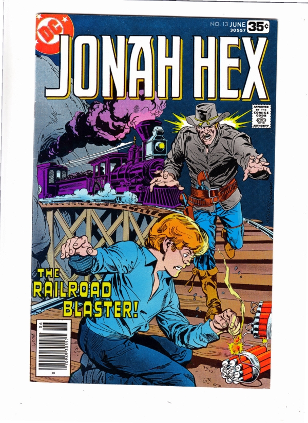 Jonah Hex #13 - The Railroad Blaster! Tiny wear and a thin printers crease at the top of the spine. Characters Jonah Hex Stories "The Railroad Blaster!" Issue #13 - Vol. Era: Bronze Age Date: Apr-78 Cover Pric ... Read More