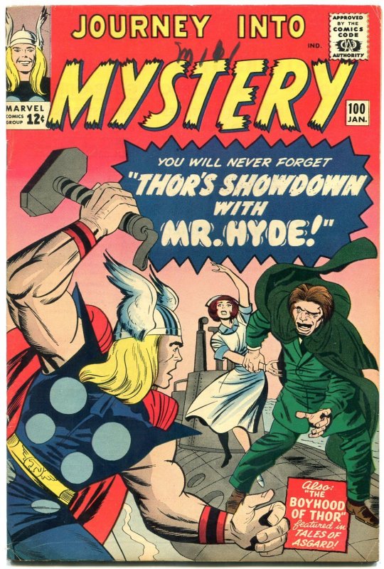 Grade: FN/VFJourney into mystery #100 1963-thor-mr hyde-kirby-fox vf- kirby, heck and matt fox art. Thor battles mr hyde!!! Beautiful glossy cover copy. Grade: fn/vf sku: ck02-062
