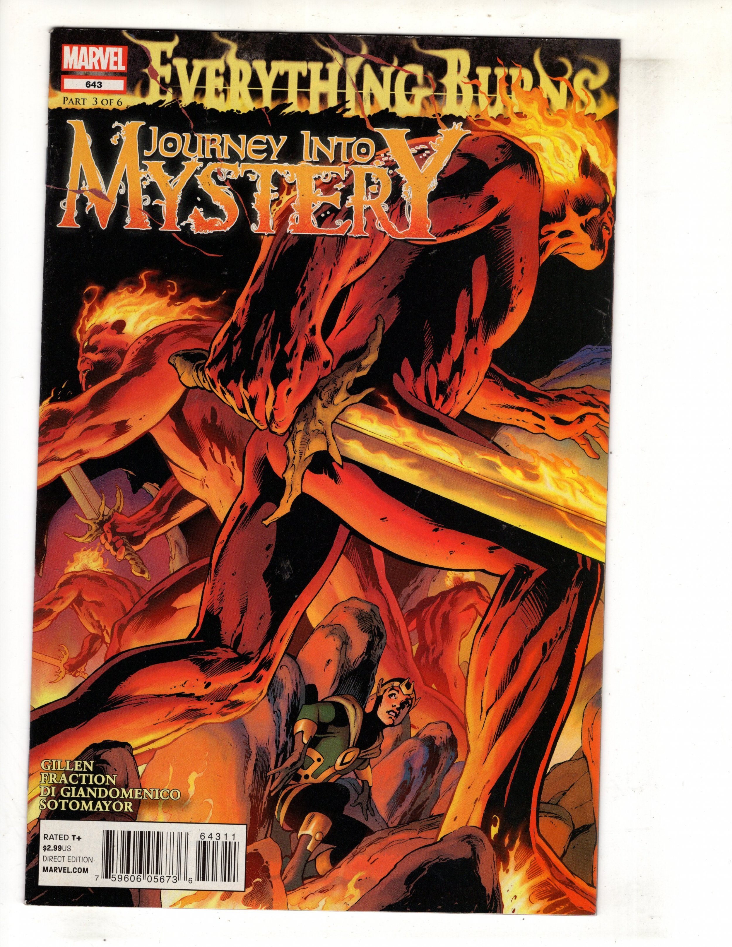 Everything Burns: Part 3 of 6 - (W) Kieron Gillen, Matt Fraction. (A) Carmine di Giandomenico. (CA) Alan Davis. With the nine realms aflame and Asgardia besieged on all sides, a desperate Loki journeys into the heart of Surtur's fiery kingdom to...parlay?