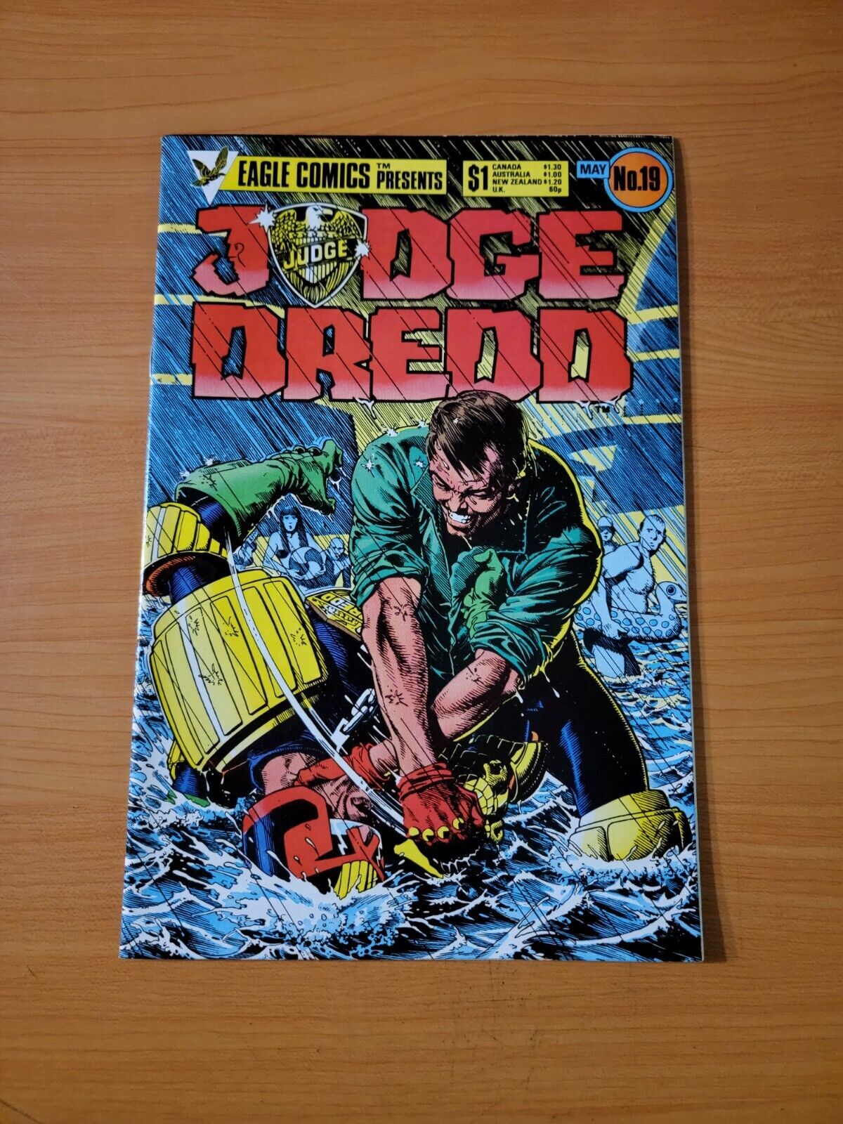 Item DescriptionJudge Dredd #19Publisher: Eagle ComicsPublished: 1985Item Grade/ConditionGrade: NEAR MINTFor more information about this grade and other grades, please see our grading standards.~ WE TAKE HIGH DEFINITION PICTURES OF OUR COMICS ~ For more detail use the ZOOM Function and check them out yourself! ~Shipping Info:United States: Comic Book & Magazine Orders of all sizes, big and small ship for a flat Single Shipping ChargeInternational: We use Calculated Shipping! ~ This insures that you get the LOWEST POSSIBLE COST! ~ Please give us one business day to calculate large orders! The Calculator for Hip is pretty bad for international, contact us if you are looking to order multiple books so we can help you make it work on the back end! As a courtesy to our customers, we insure all orders over 50$ US ~ YOU DONT PAY EXTRA!Delivery TimeWe process and ship all orders within 1 business days. Once shipped, estimated U.S. transit time is 2-10 business days; international 14-21 business days.(Orders placed on Friday afternoon as well as weekends will be shipped the next business day as we do not ship on the weekends).PackingOmnomax Traders has mastered packing to ensure our orders of a "damage-free transport."Using the following methods, we have seen a nearly perfect 99% success rate for undamaged comics!Here is how our orders ship:All Orders :Bagged AND Boarded, ALWAYS NO EXCEPTIONS!Shipped in a Gemini Comic Mailer OR Tightly secured between 4x stiff pieces of corrugated cardboard (double Sandwiched)Sealed on all 4 sides with strong packing tape (Items doesn't even wiggle).:*Now this method is nearly perfect! however we have seen damage happen to items ( only once or twice a year ) ~ this is often due to bad handling by the postal service. Always remember to contact us if this happens! we are committed to quality service!*Offers History