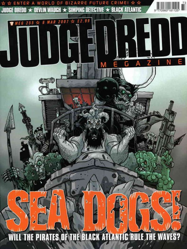 Item: Judge Dredd Megazine (Vol. 4) #255 | Publisher: Fleetway Quality | Cover Date: March 2007 | Writer: Robbie Morrison, Dan Abnett, John Wagner, John Smith, Steven Prestwood, Simon Spurrier | Artist: Lee Garbett, Steve Roberts, Greg Staples, Peter Doherty, Stephen Prestwood, Frazer Irving | Cover Artist: Steve Roberts | Storylines: Judge Dredd: Shadowkill, Part 2; Black Atlantic: Meet the Jetsams, Part 3; Judge Dredd: Awayday!; Trilithon; Devlin Waugh: Innocence & Experience, Part 3; The Simping Detective: No Body No How, Part 3 | With Economy shipping, each additional comic ships for just 50 cents more to customers in the USA. This listing contains a stock photo and information from ComicBase™ and © Human Computing. The stock photo is for reference only. If you would like to see a photo of the actual item, please message us prior to purchasing.