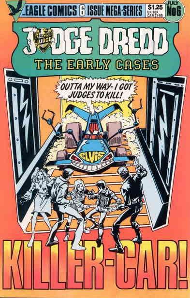 Item: Judge Dredd the Early Cases #6 | Publisher: Eagle | Cover Date: July 1986 | Writer: John Wagner | Artist: Ian Gibson | Storylines: 22nd Century Futsie; Elvis | With Economy shipping, each additional comic ships for just 50 cents more to customers in the USA. This listing contains a stock photo and information from ComicBase™ and © Human Computing. The stock photo is for reference only. If you would like to see a photo of the actual item, please message us prior to purchasing.Seller Information