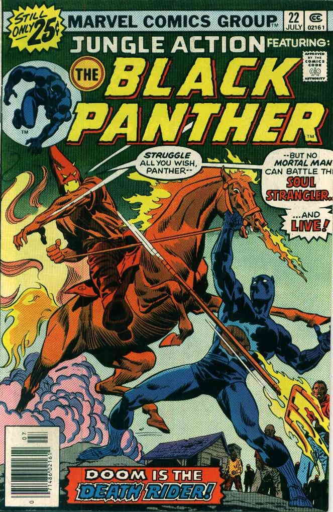 Item: Jungle Action #22 | Publisher: Marvel | Cover Date: July 1976 | Writer: Don McGregor | Artist: Billy Graham, Rich Buckler | Cover Artist: John Buscema | Appearances: Black Panther, Kevin Trublood, Monica Lynne, Soul Strangler | Storylines: Death Riders on the Horizon | With Economy shipping, each additional comic ships for just 50 cents more to customers in the USA. This listing contains a stock photo and information from ComicBase™ and © Human Computing. The stock photo is for reference only. If you would like to see a photo of the actual item, please message us prior to purchasing.Seller Information