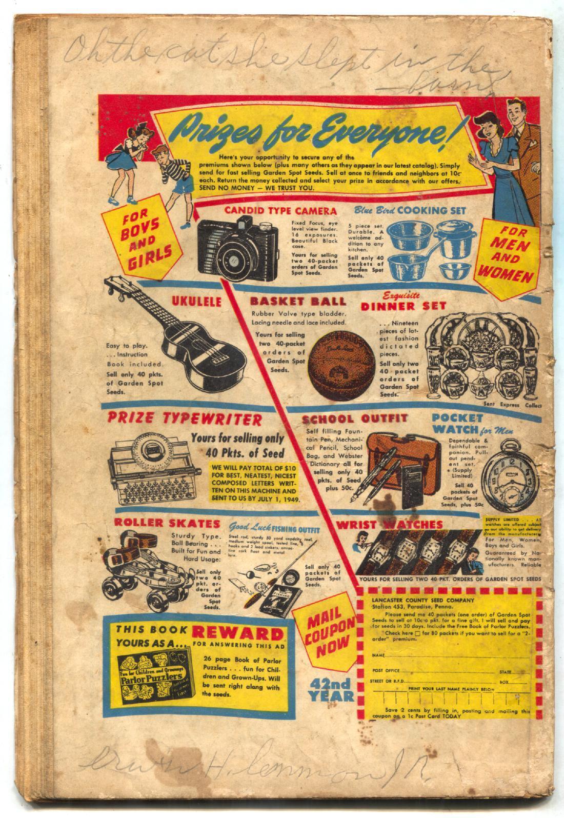 Grade: P Junior Miss #34 1949- CINDY- Marvel Comics incomplete Cindy. Good girl art. Centerfold and one panel missing, incomplete. Grade: P SKU: CTR-56-323