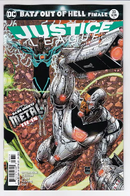 Grade: 9.2 Near Mint-JUSTICE LEAGUE (2016 DC) #33 Item Number: CXWH-A75622 A METAL tie-in! 'BATS OUT OF HELL' finale! it's the Justice League versus the Dark Knights! FIGHT! The Dark Knights have taken a fallen Justice League to the frightening castle of [REDACTED] inside the possessed Gotham City, where they will be prepared as a sacrifice! The Justice League's only hope is Cyborg, whose return from the Dark Multiverse has changed him forever!