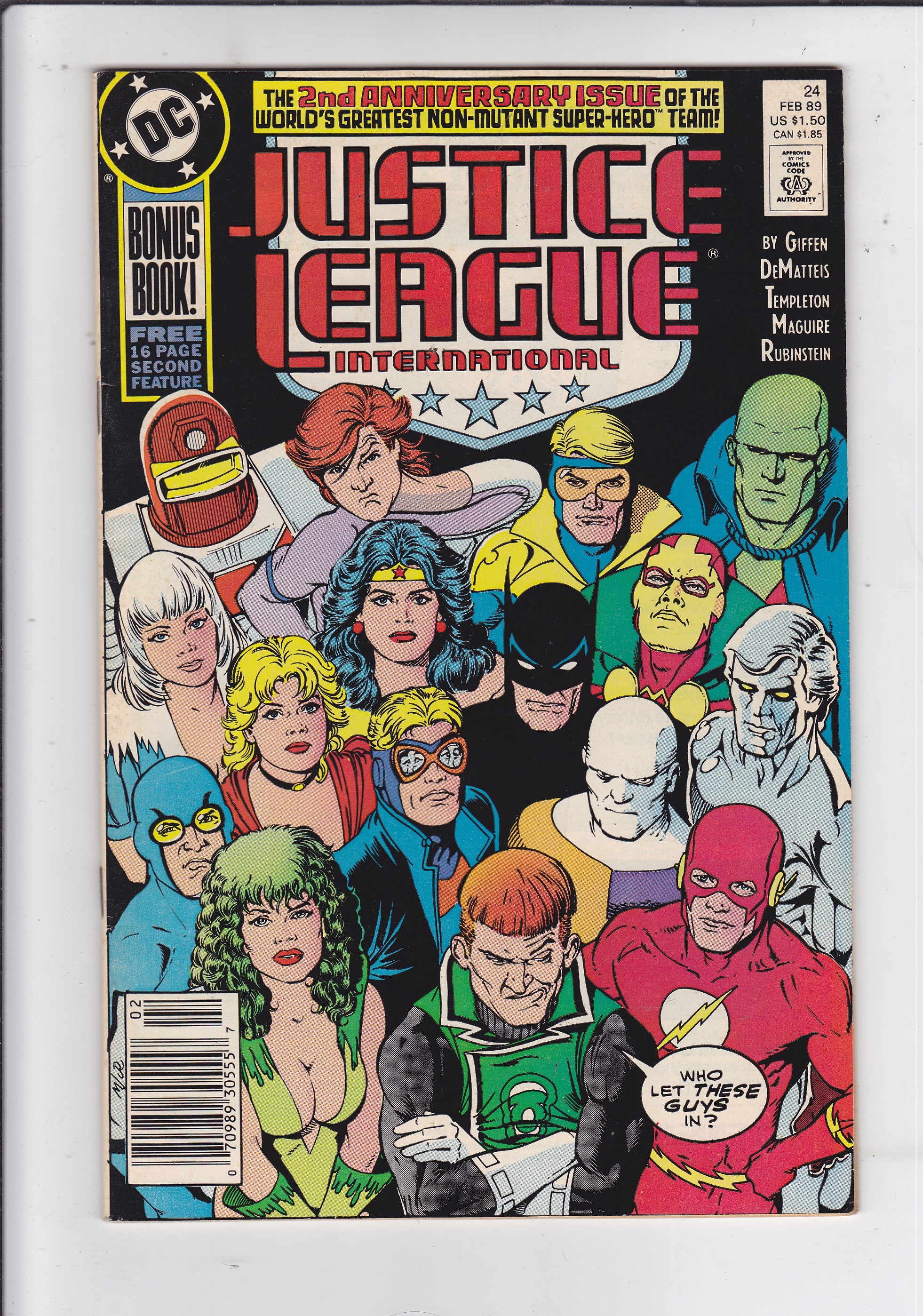 Justice League #24 by DC Comics copyright 1989. I have graded the comic book, using the Overstreet Grading Guide, at FINE with the following defects: Light stress marks along the spine. The corners are rounded. There is some yellowing of the pagesSeller Information