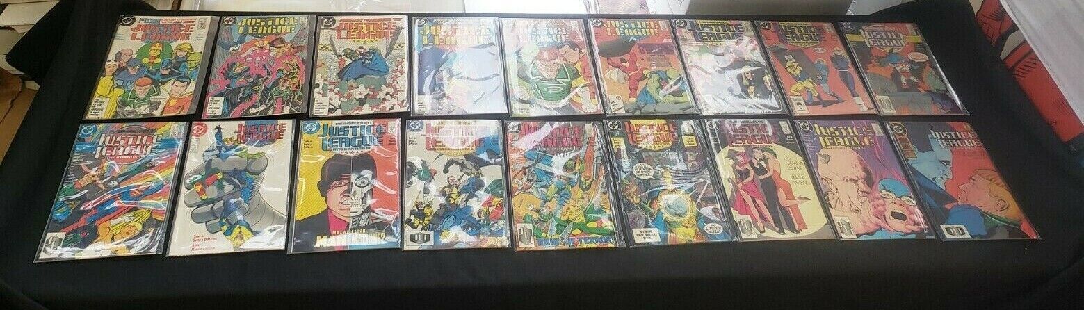 Justice league 26pc (vf/nm) kevin maguire run, issues #1-26, bug hunt 1987-89size: 7" x 10"this item was uploaded by tk.We combine shipping!!! Either wait for us to send you an invoice after you commit to buy or, if it makes you pay right away, message us back and we'll refund the excess charge. Buy as many single comic books as you want for one low flat shipping rate in the united states! International will be charged exact according to size and weight. If you have any specific questions or requests, please ask us prior to ordering and we'll get back to you as soon as we can. If there are any problems with your order whatsoever, please message us before leaving feedback and we'll be happy to work with you to fix the situation! We ship worldwide, combine purchases, and charge exact shipping. The price may vary based on size, weight, and location. If you are automatically overcharged for shipping, message us and we'll be happy to revise the invoice or refund you the excess amount. If you have any questions regarding shipping, please message us. International buyers - please note: import duties, taxes, and charges are not included in the item price or shipping cost. These charges are the buyer's responsibility. Please check with your country's customs office to determine what these additional costs will be prior to bidding or buying. Payment can be made by paypal and credit cards directly. 120,000+ items in total in my Hip store! Frequently asked questions: when are your operation hours?Our in office hours are monday - friday, 11 am - 8 pm. We are not open on weekends, so if you send us a request on friday evening we won't get back to you until monday afternoon. Please don't take it as us ignoring you! We will work on your request monday and get back to you as soon as we can. Also, if you order from us on a friday evening or saturday morning we won't start processing your order until we open on monday. That means on monday it will be pulled and prepped for shipping, then picked up by the postman on tuesday morning.When will you ship my item? The tracking hasn't moved.We realize you're eager to get your item, so if the tracking hasn't moved in a few days please don't be concerned. We give the postman a lot of packages daily, sometimes as many as 100, so he does not scan each item for us upon pickup as he says it would be too time consuming for him to do so. If you get a tracking number from us, that almost always means your item was picked up by the postman the next business day. The usps is also imperfect. There are times when the tracking won't even show movement until it's in your area's regional distribution center. This is normal in our experience. Is the item pictured the exact one for sale?Yes! We don't use stock images and go through great lengths to scan or photograph everything we list. The item pictured is exactly what you should receive unless it is a fixed price listing with multiple items available. Can you issue a coa? We can, upon request. Please make sure you leave us a note while checking out and shoot us a message immediately after requesting one, just to be sure. How do you grade?Grading is very subjective, but we are professionals with decades of grading experience between us who try the best we can to accurately describe the condition of the items we list. Anthony is an overstreet comic book price guide advisor please see the grading chart below for a breakdown of how we grade: note: we don't grade any raw books higher than 9.2, as once you go higher than that grading gets really subjective. If you buy a nm book from us, it may very well be higher than 9.2 but we play it safe and grade conservatively. 9.2 nm near mint 9.0 vf/nm very fine/near mint 8.5 vf+ very fine+ 8.0 vf very fine 7.5 vf- very fine- 7.0 fn/vf fine/very fine 6.5 fn+ fine+ 6.0 fn fine 5.5 fn- fine- 5.0 vg/fn very good/fine 4.5 vg+ very good+ 4.0 vg very good 3.5 vg- very good- 3.0 gd/vg good/very good 2.5 gd+ good+ 2.0 gd good 1.8 gd- good- 1.5 fr/gd fair/good 1.0 fr fair 0.5 pr poorhow do you ship comics? We ship in rigid cardboard mailers to protect your comic book from the worst the mail system has to offer. Price varies based on the number of books you purchase, but we try to keep costs as low as we can and charge exact shipping. If it looks unusually high to you please send us a message and we'll be happy to double check for you. Do you combine shipping? Yes, of like items. Such as: several comics can fit in one cardboard mailer, as can more than one record. Multiple art pages can easily be combined because they are light and thin. Where combined shipping differs is with size and weight. For instance, two statues require a much bigger box. Same goes for cgcs, as the package gets bigger and heavier as you go. Do you ship well? I've had some bad experiences... You needn't worry; we are professionals who value your business and want your item to arrive safely as much as you do. I have been collecting for over 30 years. I send out items the way i would like to receive them. The tracking says my item is "out for delivery" in new jersey. Why is that?If the tracking indicates that the item is "out for delivery" in nj don't worry, it's just what the tracking says when it's carried over from the postman to the sorting center. This is normal for our post office and will not impact you receiving your item in a timely matter.What is the difference between a run and a lot?Good question. A run will be a collection of consecutive issues with no breaks in between them. If it says run of #s 1 - 50 you will receive 50 consecutive comics. A lot will be within a certain range, so a 50pc lot will not contain consecutive books.I changed my mind after successfully winning the auction or fixed price listing, will you cancel the transaction? Please only bid or hit buy it now if you are willing to follow through and pay for the item, we will not cancel the transaction. As a seller, Hip penalizes us every time we cancel an 