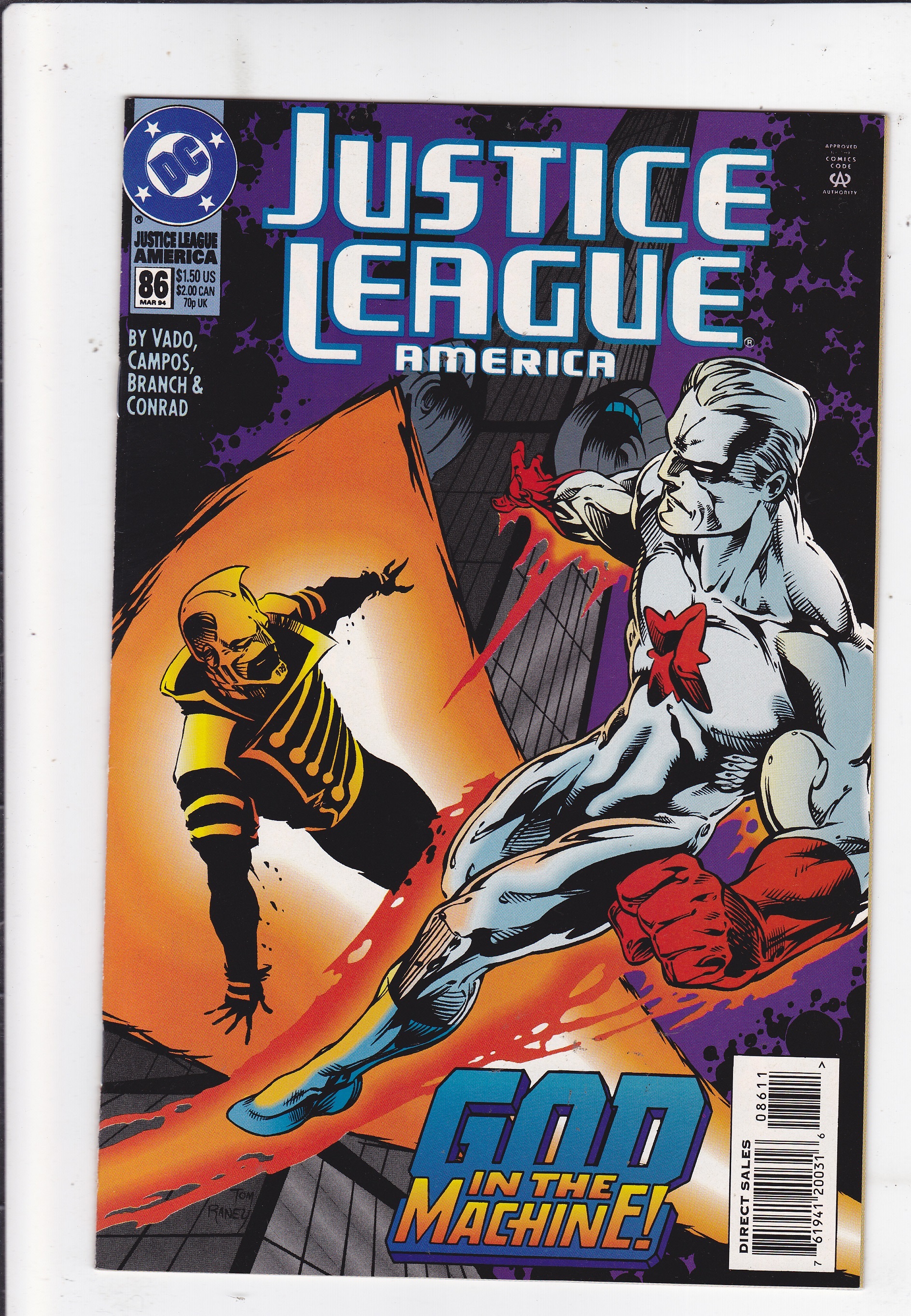 Justice League #86 by DC Comics copyright 1994. I have graded the comic book, using the Overstreet Grading Guide, at FINE+ with the following defects: Light stress marks along the spine . The corners are rounded. There is yellowing of the pages.Seller Information